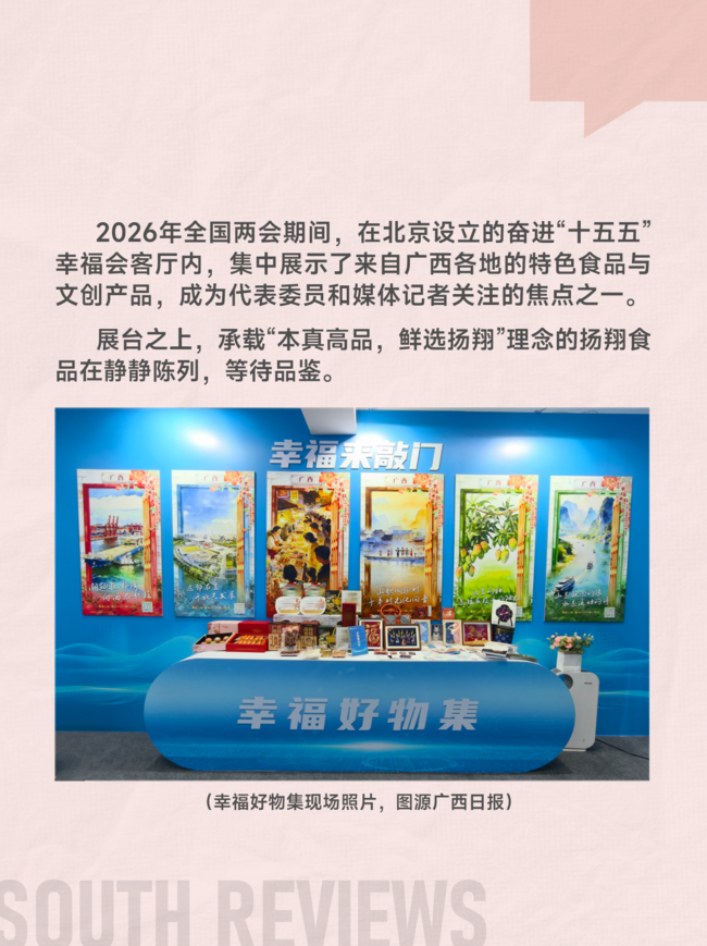 三月中旬,广西媒体在北京设立的幸福好物集展厅内,集中展示了来自广西各地的特色食品与文创产品,扬翔食品凭借地道风味与过硬品质,成为全场瞩目的焦点。
